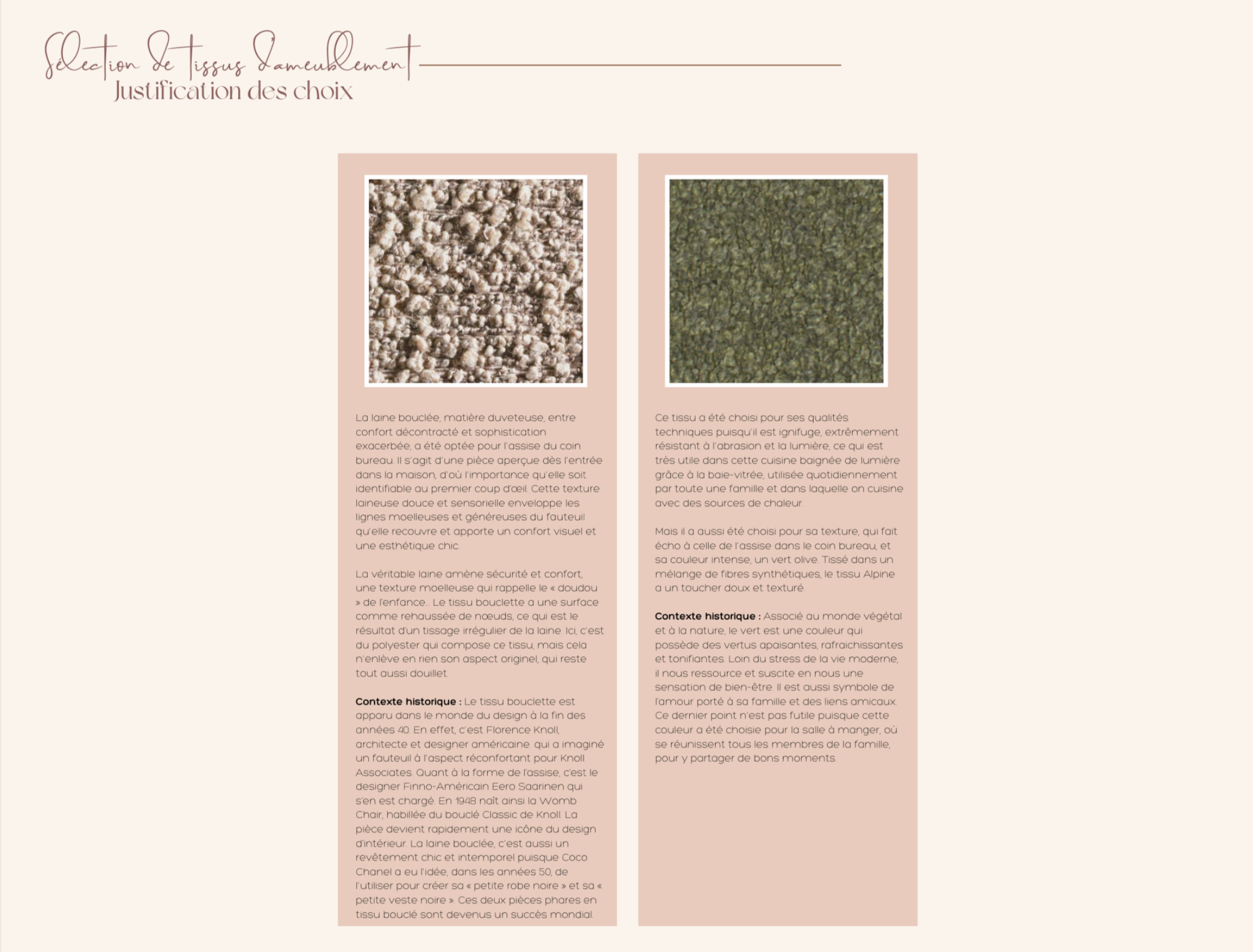 Ce projet mêle élégance naturelle et engagement éco-responsable. Autour d’une palette douce dominée par le beige et le blanc crémeux, l’espace invite à la convivialité grâce à des matériaux bruts et authentiques : bois, travertin, jute, lin, marbre ou encore chaux.